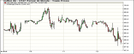10月USDA預(yù)測(cè)繼續(xù)上調(diào)世界產(chǎn)量,其中美棉產(chǎn)量下調(diào)14萬(wàn)噸,其它國(guó)家產(chǎn)量上調(diào);紐約期棉1712合約收于67.84美分/磅,跌89點(diǎn);1803合約收于67.37美分/磅,跌93點(diǎn)。當(dāng)日主力合約開(kāi)盤(pán)后上漲并很快達(dá)到當(dāng)日最高價(jià),USDA預(yù)測(cè)發(fā)布前合約價(jià)回落并窄幅震蕩,預(yù)測(cè)發(fā)布后下跌。收盤(pán)前合約離開(kāi)最低點(diǎn)但未能完成反彈。本月USDA預(yù)測(cè)下調(diào)美棉產(chǎn)量14萬(wàn)噸,但巴西和其它國(guó)家產(chǎn)量上調(diào),世界產(chǎn)量小幅上調(diào)2.5萬(wàn)噸;世界消費(fèi)量上調(diào)5.7萬(wàn)噸,期末庫(kù)存小幅調(diào)減3.4萬(wàn)噸。