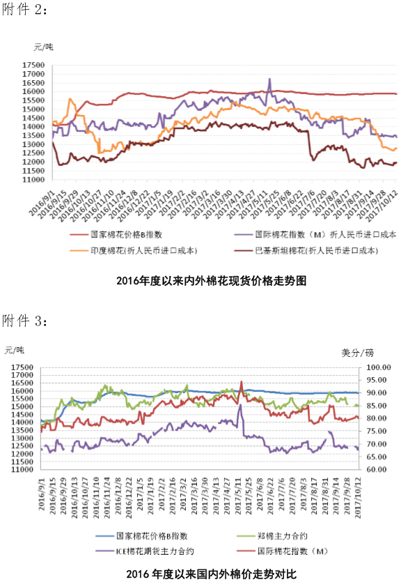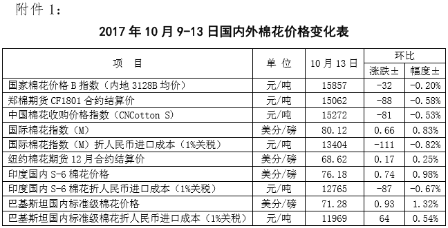附件1:2017年10月9-13日國(guó)內(nèi)外棉花價(jià)格變化表