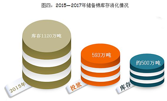 臨時收儲結(jié)束后,我國儲備棉庫存超過1100萬噸,相當于國內(nèi)一年半左右的消費量,庫存壓力巨大。為推進“去庫存”,有關(guān)部門決定逐步有序消化儲備棉,將儲備規(guī)模調(diào)整至合理水平。儲備棉調(diào)控政策由臨時動議向機制化、常態(tài)化轉(zhuǎn)變,明確有利于促進產(chǎn)業(yè)健康發(fā)展、引導市場平穩(wěn)運行、減輕財政、完善儲備調(diào)控機制的儲備棉消化原則,同時確定定期常量輪出、隨行就市動態(tài)確定輪出底價等具體方式,對穩(wěn)定市場預(yù)期,消化庫存規(guī)模起到積極作用。經(jīng)過兩個年度的投放,儲備棉規(guī)模降已降至500萬噸左右,儲備規(guī)模趨于合理。