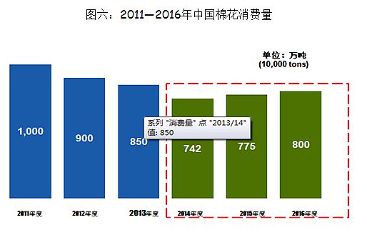 受經(jīng)濟環(huán)境及內(nèi)外棉價差較大等多種因素影響,棉花消費量在臨時收儲期間逐步遞減,在目標價格改革試點期間有所恢復,目前已再度返回800萬噸以上。紡織企業(yè)用棉成本有所降低,競爭力提高,全行業(yè)效益提升,主要表現(xiàn)在:紗、布等產(chǎn)量呈恢復態(tài)勢,產(chǎn)品價格上漲;紡織品服裝出口回穩(wěn),出口降幅減緩。新疆紡織業(yè)發(fā)展迅速,2014-2016年新疆紡織業(yè)固定資產(chǎn)投資達900億元,超過1978-2013年投資總額。