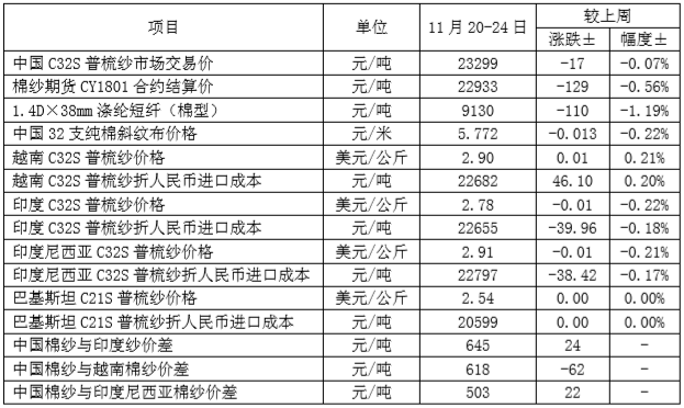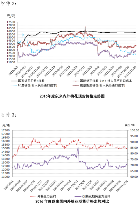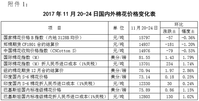 附件1:2017年11月20-24日國內(nèi)外棉花價(jià)格變化表