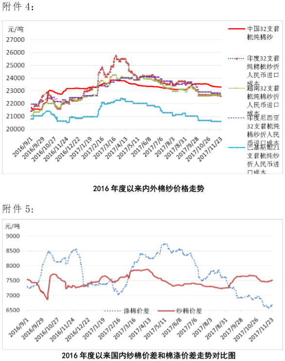 附件4:2016年度以來國內(nèi)外棉紗價(jià)格走勢圖