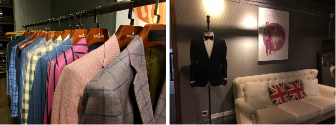 陳列的西裝樣品,件件熠熠發(fā)光