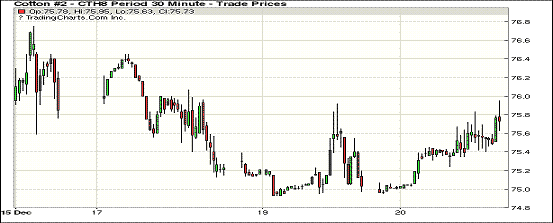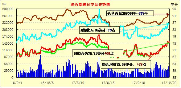 20日紐約期棉市場在前兩個(gè)交易日連續(xù)下跌后中幅收漲,近月1803合約結(jié)算價(jià)75.03美分/磅,下跌17點(diǎn),1805合約結(jié)算價(jià)75.33美分,跌31點(diǎn)。當(dāng)日3月合約平穩(wěn)開盤,上半場交易在75.5美分以下運(yùn)行,交易中期受買盤支持打破75.5美分禁錮重心向上高位徘徊,最終收于75.71美分。分析師指出,雖然近期期貨上漲現(xiàn)貨價(jià)格上調(diào)后出口勢頭預(yù)期不佳,但美棉已簽約量大對(duì)行情形成支持。