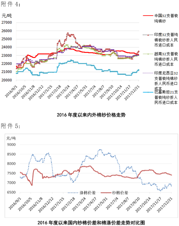 附件4:2016年度以來國內(nèi)外棉紗價格走勢圖