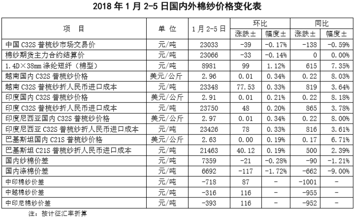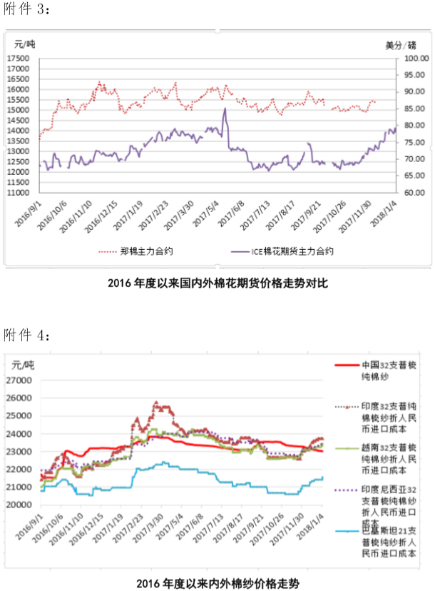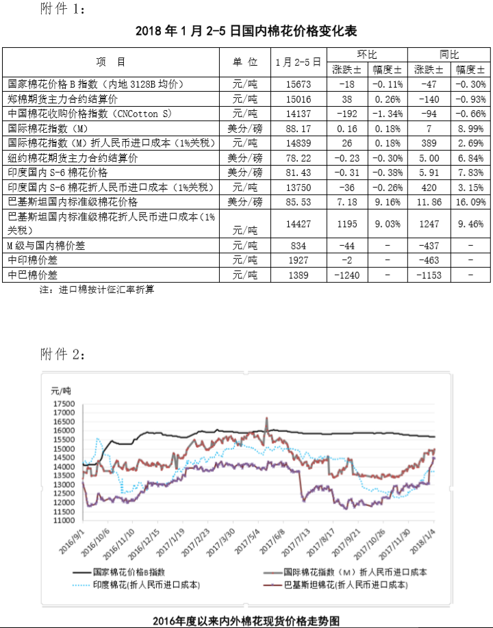 附件1:2018年1月2-5日國內(nèi)外棉花價(jià)格變化表