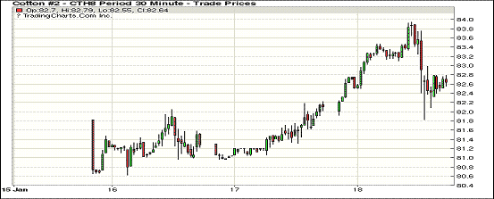 18日紐約期棉市場(chǎng)小幅收漲,近月1803合約結(jié)算價(jià)82.63美分/磅,漲49點(diǎn),1805合約結(jié)算價(jià)82.99美分,漲60點(diǎn),1807合約83.36美分,漲76點(diǎn)。當(dāng)日3月合約穩(wěn)定開(kāi)盤(pán)后受投機(jī)買(mǎi)盤(pán)支持突破83美分,最高未能突破84美分的頂點(diǎn)調(diào)頭向下,吐盡所有漲幅,但最終在82美分一線獲得支撐,小幅收漲。外圍美元指數(shù)上行,谷物期貨整體收跌。分析指出,當(dāng)前期貨價(jià)格水平下,國(guó)際棉花現(xiàn)貨市場(chǎng)成交不夠活躍,以美國(guó)低馬值棉花成交為主。3月合約未點(diǎn)價(jià)合約謹(jǐn)慎點(diǎn)價(jià)。