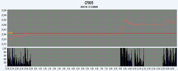 | CF805 | 15315 | 15545 | 15300 | 15520 | 15455 | 80 | 261528 | -22054 | 7567432 | 422166 | 37000 |