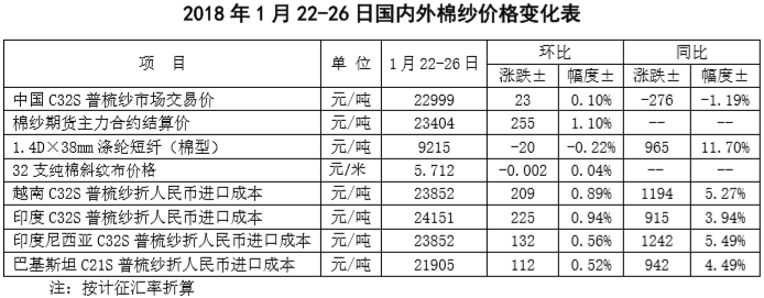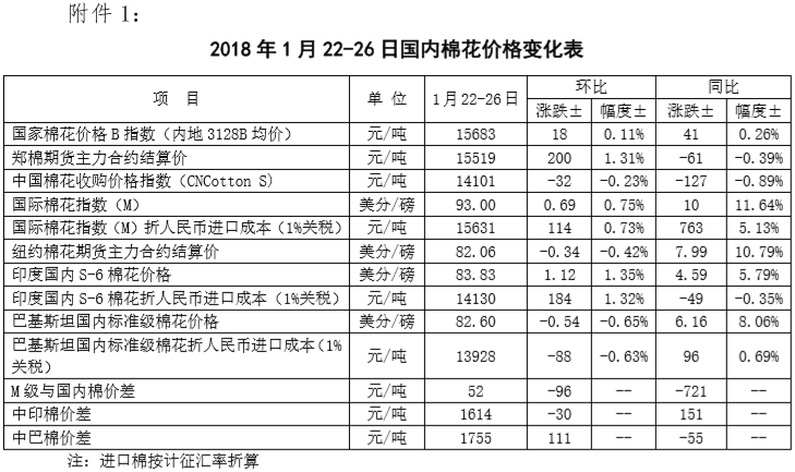 附件1:2018年1月22-26日國內(nèi)外棉花價(jià)格變化表