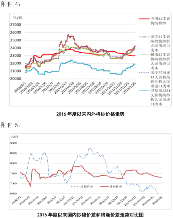 附件4:2016年度以來國內(nèi)外棉紗價(jià)格走勢圖