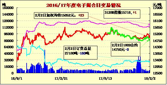 2日電子撮合交易成交量增加,整體合同均價多數(shù)收漲,整體合同上漲幅度較小,其中MA806成交量較大,為1910噸;活躍交投的合同多集中于遠期合同,整體訂貨量總量有所減少,其中MA1805訂貨量最大,累計訂貨量為7540噸。紐約棉花期貨周四收漲,3月合約上漲1.07美分,報收于78.35美分,美國農(nóng)業(yè)部周四公布的出口銷售報告顯示,1月25日當(dāng)周,美國2017/18年度陸地棉出口凈銷售30.33萬包,較前四周均值增加50%,出口裝船30.51萬包,創(chuàng)市場年度高位,較之前一周增加31%,東南亞國家進口需求持續(xù)良好,銷售較上周大幅轉(zhuǎn)好,且近期美棉大幅下跌,吸引棉紡買盤跟進,也有助于棉價企穩(wěn)。