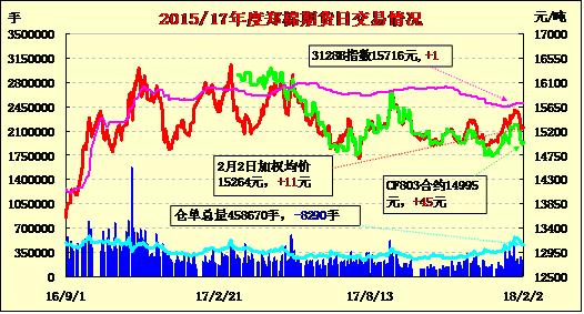 2日隔夜鄭棉反彈震蕩,今日早盤繼續(xù)維持盤整走勢,尾盤在平倉盤集中打壓下收弱,日線形成星線。日內(nèi)成交量清淡,持倉量繼續(xù)減少?;久媲闆r:現(xiàn)貨市場觀望氣氛略增,略有節(jié)前小幅補(bǔ)貨,且好質(zhì)量資源略顯惜售心態(tài),部分商家?guī)齑娌欢嗟?,亦有囤貨?jié)后銷售意向,山東庫疆棉手摘長度28強(qiáng)度26報價在15900-16100元/噸毛重自提,機(jī)采棉內(nèi)地庫報價在15800-16000元/噸原單毛重,地產(chǎn)3128級報價在14500-14800元/噸,整體實單商談均有優(yōu)惠空間。且由于臨近春節(jié)長假,部分貿(mào)易商特別是外商也逐步休假,再加上天氣因素,導(dǎo)致棉花運(yùn)輸受限,棉花市場冷清,逐步進(jìn)入春節(jié)休假模式。