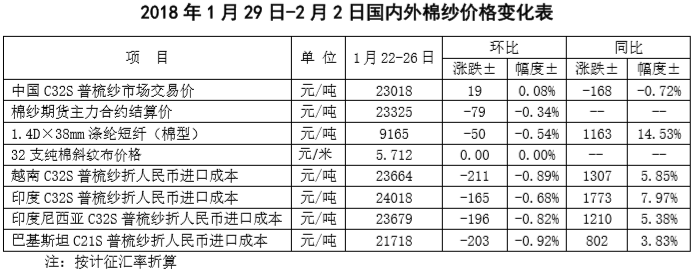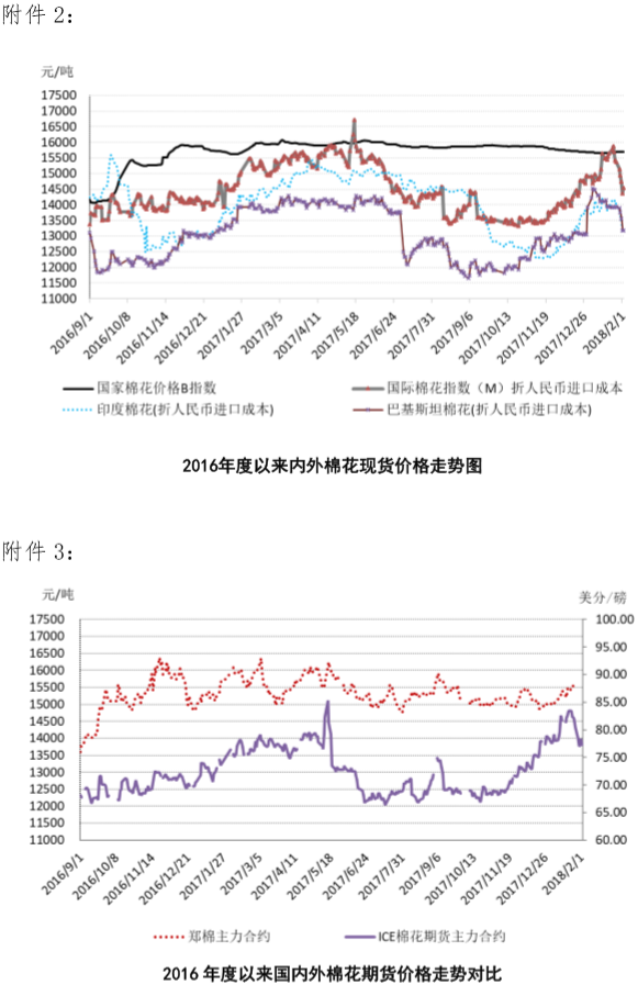 附件1:2018年1月29日-2月2日國(guó)內(nèi)外棉花價(jià)格變化表