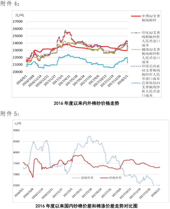 附件4:2016年度以來國(guó)內(nèi)外棉紗價(jià)格走勢(shì)圖