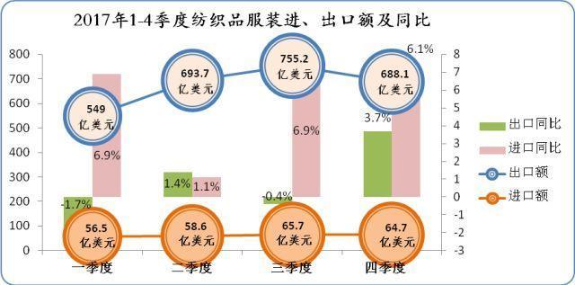 2017年紡織品服裝進出口呈現(xiàn)如下特點: