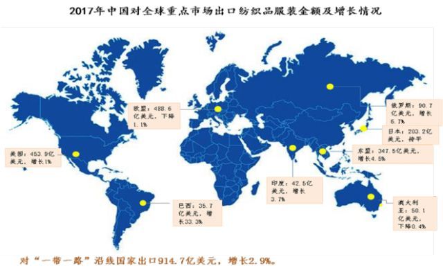 2017年是中國—中東歐“16+1”合作5周年,5年來中國與中東歐16國間紡織服裝貿易額逐步擴大,中方出口累計增長17.8%,進口增長27.1%。這16個國家均是“一帶一路”沿線國家,未來仍有較大發(fā)展空間。
