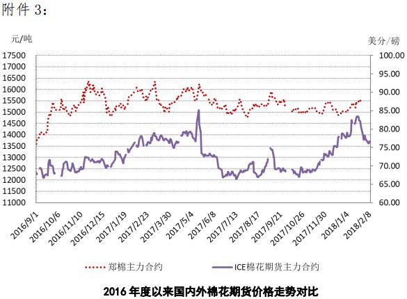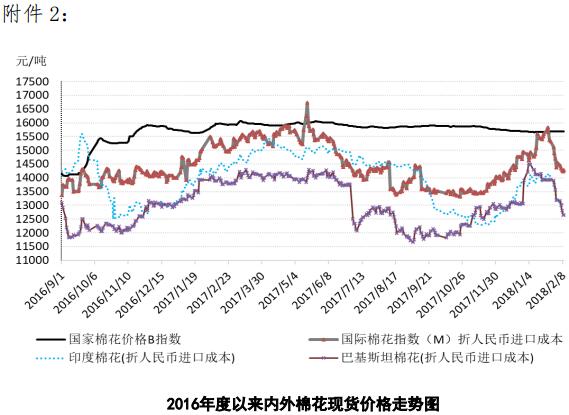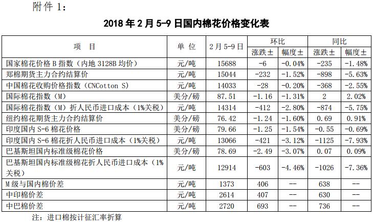 附件1:2018年2月5-9日國內(nèi)外棉花價格變化表