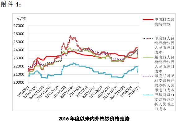 附件4:2016年度以來國內(nèi)外棉紗價格走勢圖