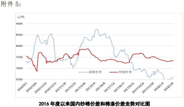 附件5:2016年度以來國內(nèi)紗棉價差和滌棉價差走勢對比圖