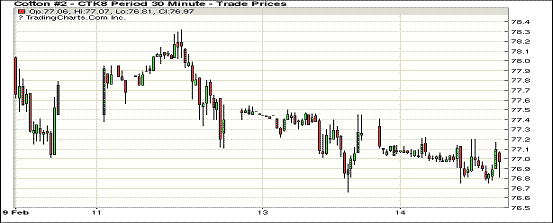 14日紐約期棉市場全面收跌,近月1803合約結(jié)算價75.60美分,跌78點;1805合約結(jié)算價76.97美分,跌43點;1807合約結(jié)算價78.00美分,跌42點;2019年度合約下跌22-37點不等。當(dāng)日5月合約低開低走,盤中獲買盤支撐幾度短暫反彈,試圖穩(wěn)定在77美分之上,但因賣盤壓力過重,最終以小幅收跌。連續(xù)三個交易日5月合約累計下跌66點。美棉銷售持續(xù)進(jìn)行中,據(jù)悉由于賣方注冊不及時,部分銷售量未能在出口周報中體現(xiàn)。外圍美元指數(shù)下跌,小麥期貨下跌,玉米和大豆期貨收漲。