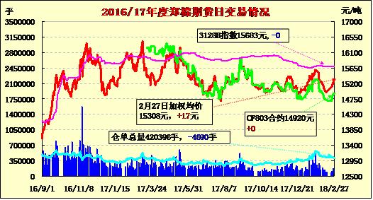 | 2月27日棉花期貨成交及持倉(cāng)排名表 | |||||||||
