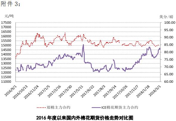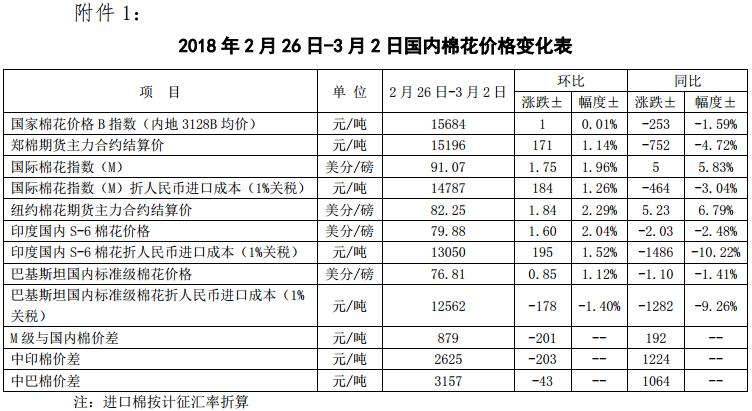 附件1:2018年2月26日-3月2日國內(nèi)外棉花價格變化表