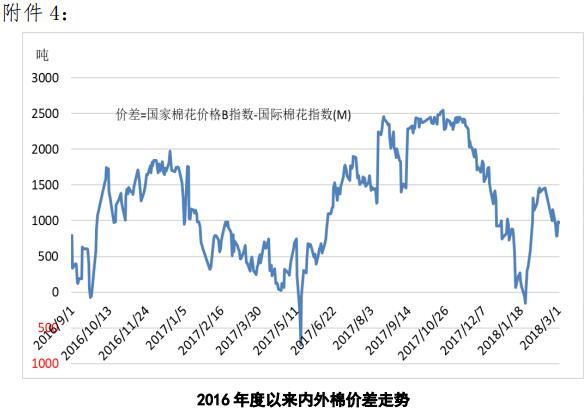 附件4:2016年度以來內(nèi)外棉價差走勢圖