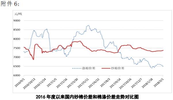 附件6:2016年度以來國內(nèi)紗棉價差和滌棉價差走勢對比圖