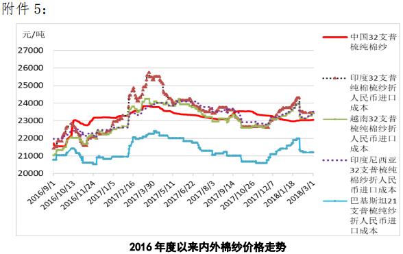 附件5:2016年度以來國內(nèi)外棉紗價格走勢圖