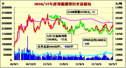 | 3月7日棉花期貨成交及持倉(cāng)排名表 | |||||||||