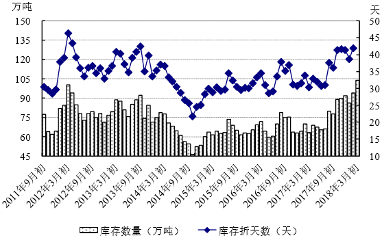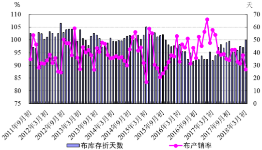 圖8.2011年度以來布產(chǎn)銷率及庫存折天數(shù)變化情