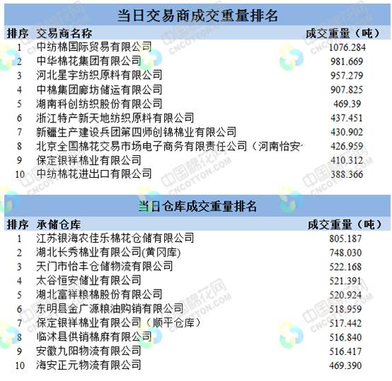 當(dāng)日地產(chǎn)棉成交7695.272噸,成交率45.38%,成交均價(jià)13994元/噸,平均加價(jià)135元/噸;新疆棉13049.665噸,成交率100%,成交均價(jià)14589元/噸,平均加價(jià)633元/噸。