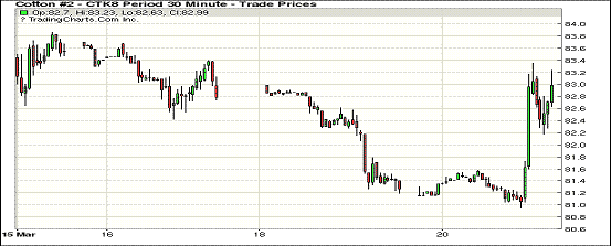 20日紐約期棉市場(chǎng)近漲遠(yuǎn)跌,1805合約結(jié)算價(jià)83.08美分,漲185點(diǎn);1807合約結(jié)算價(jià)83.18美分,漲166點(diǎn);1812合約結(jié)算價(jià)77.99美分,漲70點(diǎn);1903合約結(jié)算價(jià)78.17美分,漲67點(diǎn)。當(dāng)日5月合約小幅低開,開盤后圍繞81.5美分窄幅波動(dòng),后賣盤入場(chǎng)交易重心緩慢下行,跌至當(dāng)日低點(diǎn)80.95美分處買盤發(fā)力,市場(chǎng)躥高突破83美分,于高點(diǎn)處有少量獲利了結(jié)盤市場(chǎng)承壓下行,但最終守住83美分一線于當(dāng)日次高點(diǎn)大漲收盤。有分析師指出,昨日期棉大跌可能是由于市場(chǎng)對(duì)于經(jīng)濟(jì)不確定性以及美國總統(tǒng)提出對(duì)鋁和鐵進(jìn)口征稅引起全球貿(mào)易戰(zhàn)的擔(dān)憂引起的。外圍美元指數(shù)上漲,大豆期貨上漲,玉米和小麥期貨下跌。