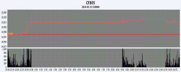 | CF805 | 14910 | 15045 | 14905 | 15010 | 14995 | 50 | 109678 | 2858 | 12774372 | 210216 | -4670 |