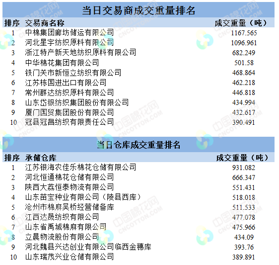 當(dāng)日地產(chǎn)棉成交5014.56噸,成交率29.40%,成交均價13698元/噸,平均加價144元/噸;新疆棉12954.761噸,成交率100%,成交均價14530元/噸,平均加價625元/噸。