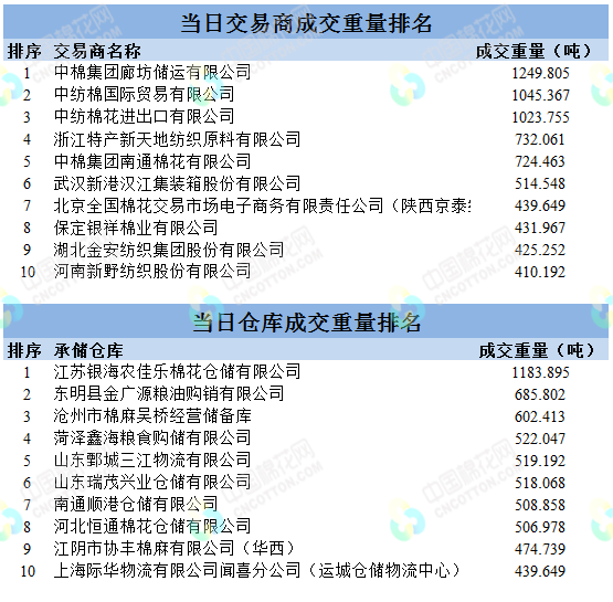 當日地產(chǎn)棉成交4716.751噸,成交率18.27%,成交均價13820元/噸,平均加價116元/噸;新疆棉12843.437噸,成交率100%,成交均價14325元/噸,平均加價502元/噸。