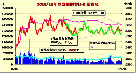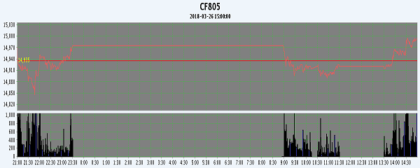 | CF805 | 14970 | 15010 | 14840 | 14995 | 14930 | -5 | 145986 | -50578 | 13221820 | 179582 | -11282 |