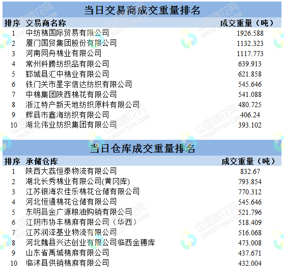 當日地產棉成交5277.935噸,成交率29.36%,成交均價13930元/噸,平均加價99元/噸;新疆棉12022.971噸,成交率100%,成交均價14384元/噸,平均加價601元/噸。