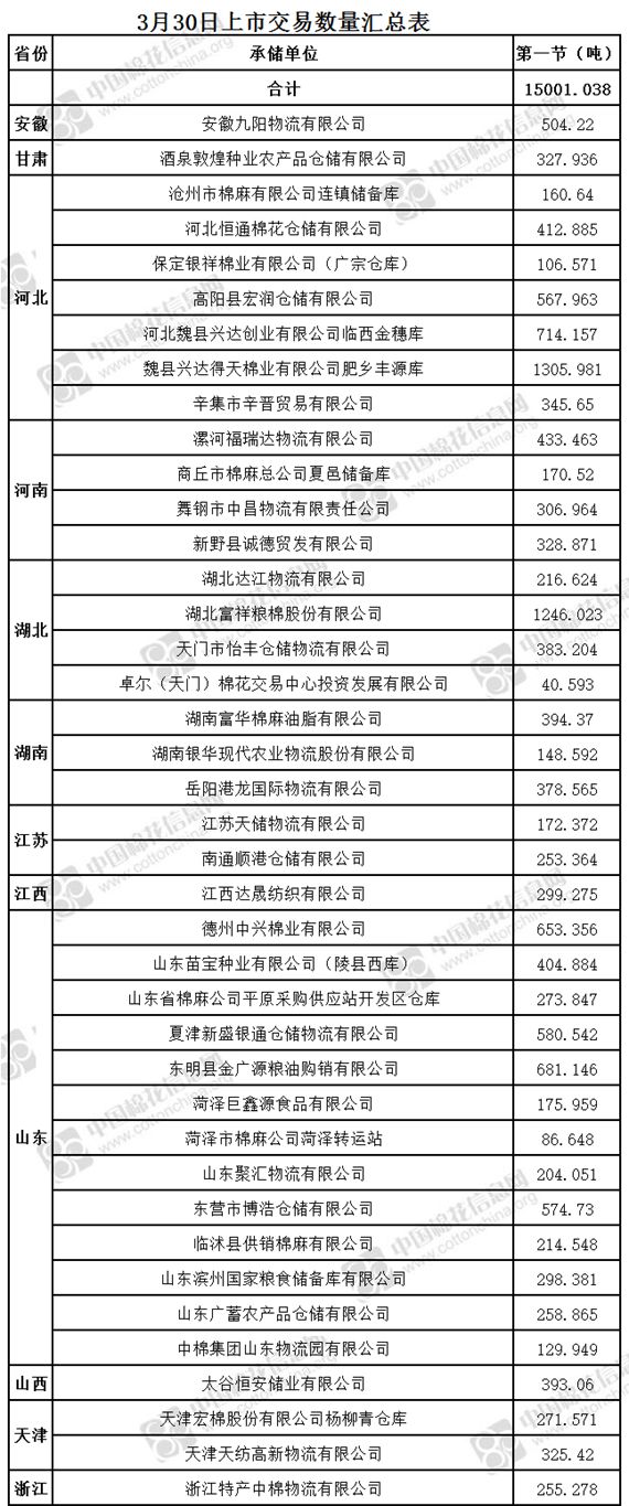 3月30日兩節(jié)共計輪出儲備棉30000.079噸。第一節(jié)銷售儲備棉15001.038噸,其中需要倒垛出庫84捆。第二節(jié)銷售儲備棉14999.041噸,其中需要倒垛出庫80捆。