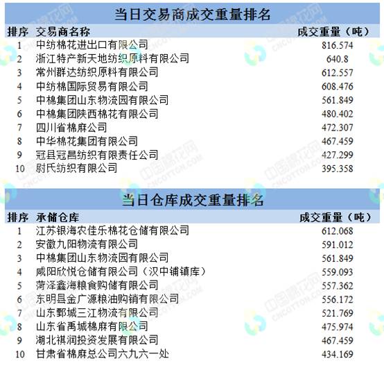 地產(chǎn)棉成交3390.124噸,成交率17.37%,成交均價(jià)13687元/噸,平均加價(jià)120元/噸,最高成交價(jià)14410元/噸,最低成交價(jià)13270元/噸;新疆棉成交10487.99噸,成交率100%,成交均價(jià)14351元/噸,平均加價(jià)542元/噸,最高成交價(jià)15740元/噸,最低成交價(jià)13480元/噸。