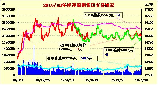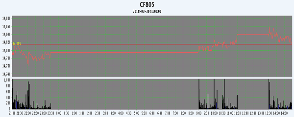 | CF805 | 14815 | 14870 | 14760 | 14825 | 14810 | -5 | 44658 | -3454 | 13559150 | 151016 | -4540 |