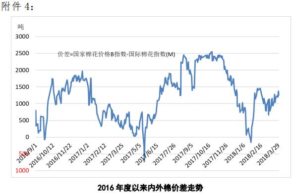 附件4:2016年度以來內(nèi)外棉價(jià)差走勢圖