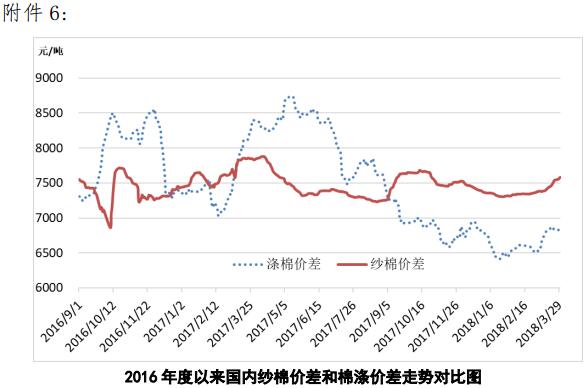 附件6:2016年度以來國內(nèi)紗棉價(jià)差和滌棉價(jià)差走勢對(duì)比圖