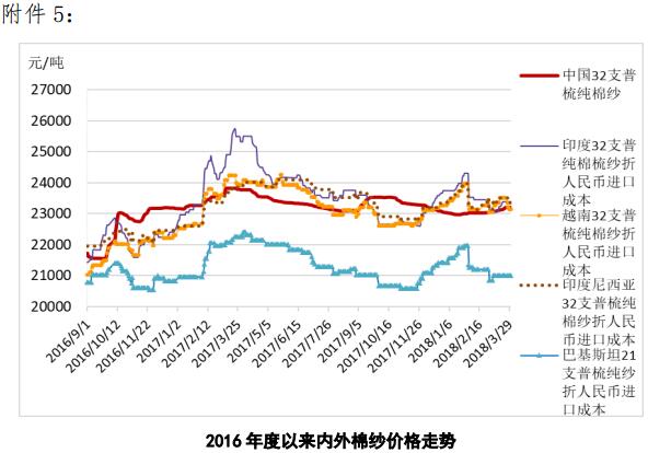 附件5:2016年度以來國內(nèi)外棉紗價(jià)格走勢圖
