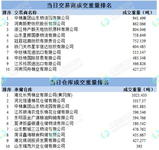 地產(chǎn)棉成交7429.178噸,成交率36.36%,成交均價(jià)13676元/噸,平均加價(jià)107元/噸,最高成交價(jià)15030元/噸,最低成交價(jià)12970元/噸;新疆棉成交9568.75噸,成交率100%,成交均價(jià)14314元/噸,平均加價(jià)675元/噸,最高成交價(jià)15910元/噸,最低成交價(jià)13520元/噸。