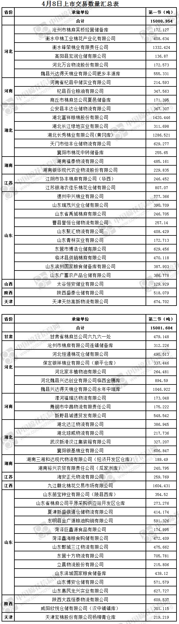 4月8日兩節(jié)共計輪出儲備棉30002.558噸。第一節(jié)銷售儲備棉15000.954噸,其中需要倒垛出庫73捆。第二節(jié)銷售儲備棉15001.604噸,其中需要倒垛出庫86捆。