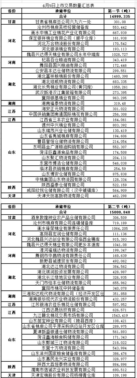 4月9日兩節(jié)共計輪出儲備棉30000.183噸。第一節(jié)銷售儲備棉14999.335噸,其中需要倒垛出庫76捆。第二節(jié)銷售儲備棉15000.848噸,其中需要倒垛出庫77捆。