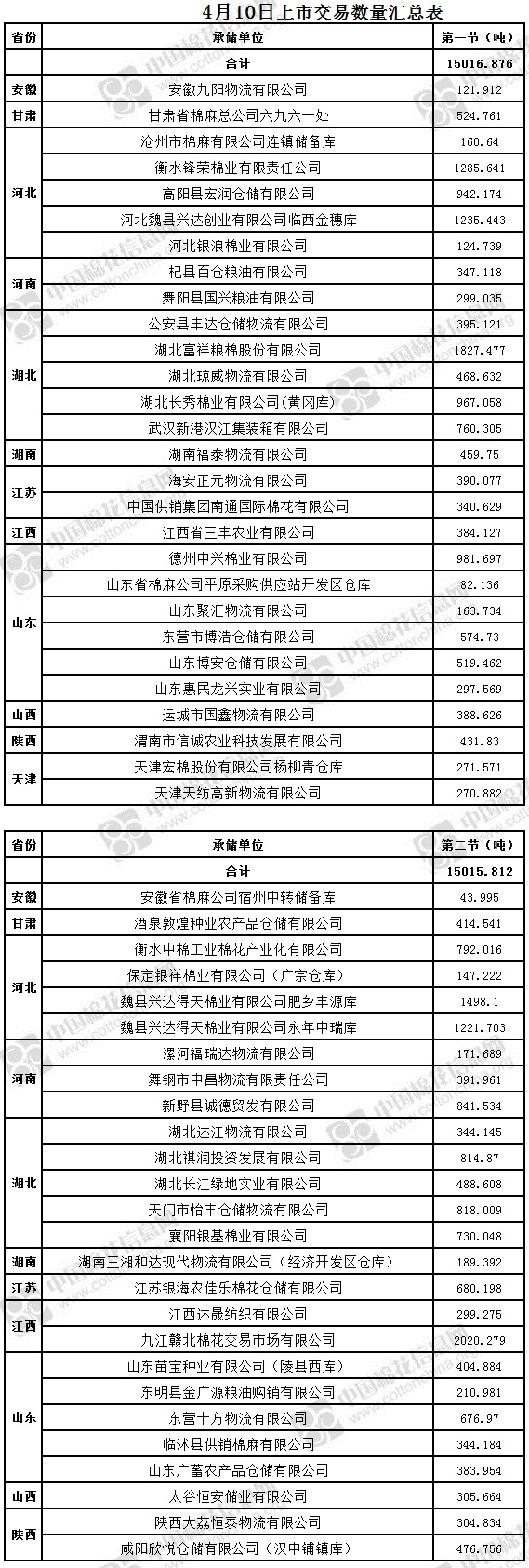 4月10日兩節(jié)共計(jì)輪出儲(chǔ)備棉30032.688噸。第一節(jié)銷(xiāo)售儲(chǔ)備棉15016.876噸,其中需要倒垛出庫(kù)78捆。第二節(jié)銷(xiāo)售儲(chǔ)備棉15015.812噸,其中需要倒垛出庫(kù)84捆。