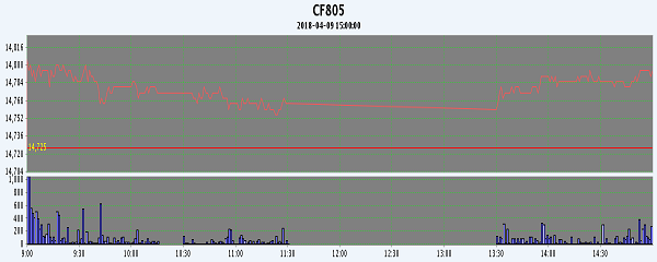| CF805 | 14780 | 14870 | 14755 | 14795 | 14790 | 65 | 22360 | -25094 | 13711074 | 130808 | -5908 |