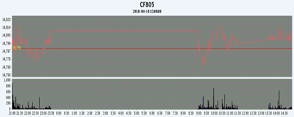 | CF805 | 14815 | 14830 | 14770 | 14805 | 14800 | 10 | 20188 | -2172 | 13731262 | 125432 | -5376 |